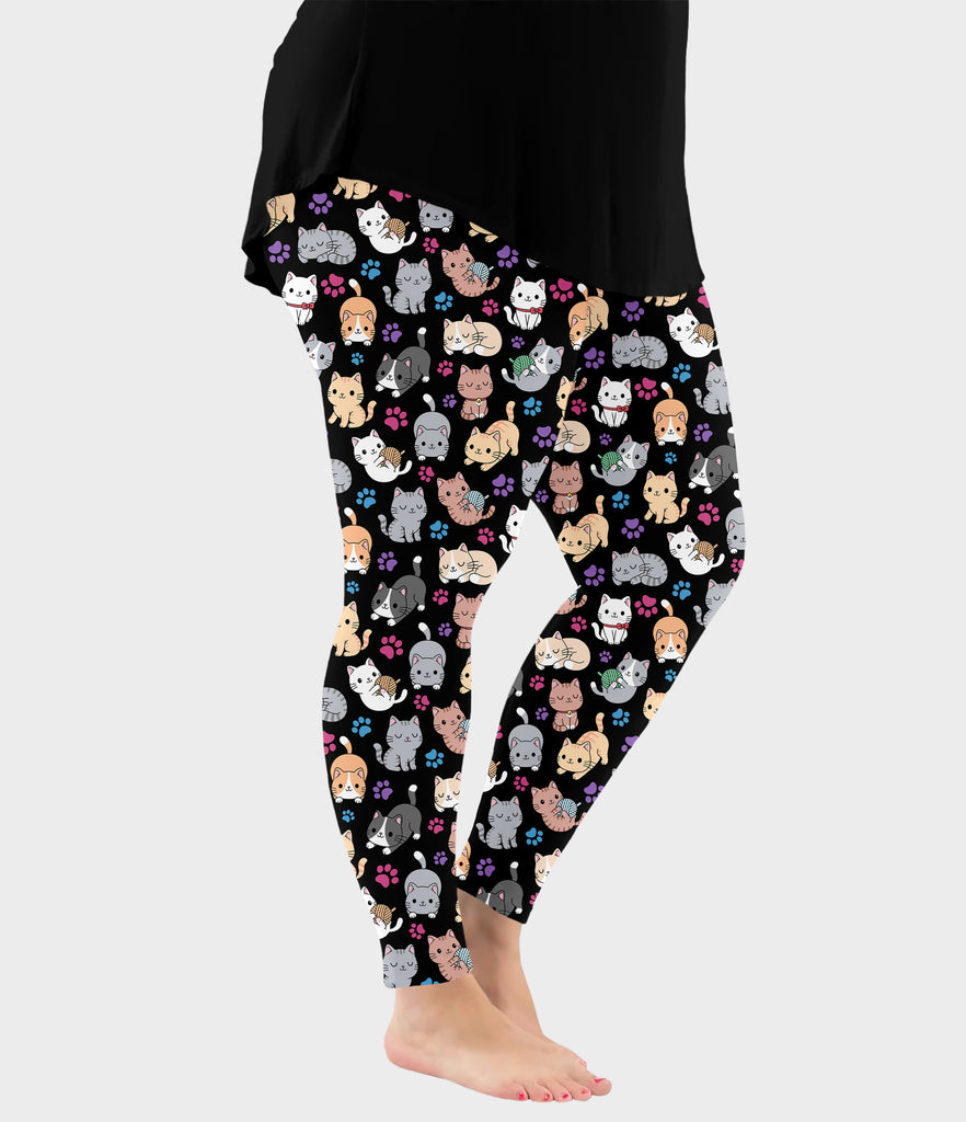 Pounce into comfort with our buttery soft leggings - complete with handy pockets and a playful parade of cute cats tumbling and lounging around. Each pair feels like a cozy cuddle and adds a whisker-twitching burst of fun to every step.