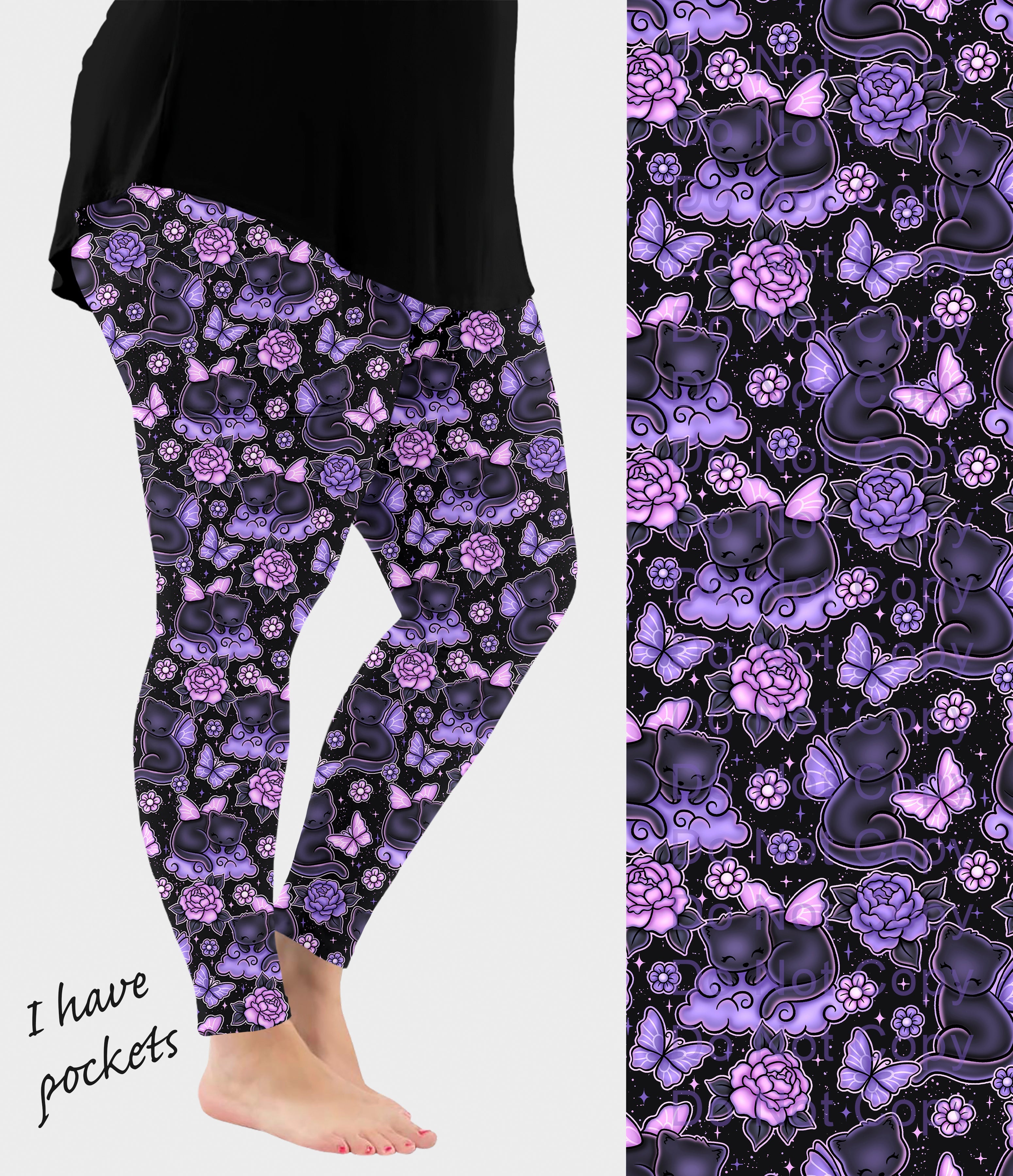 Black Fairy Cats Leggings w/ Pockets (ready to ship)