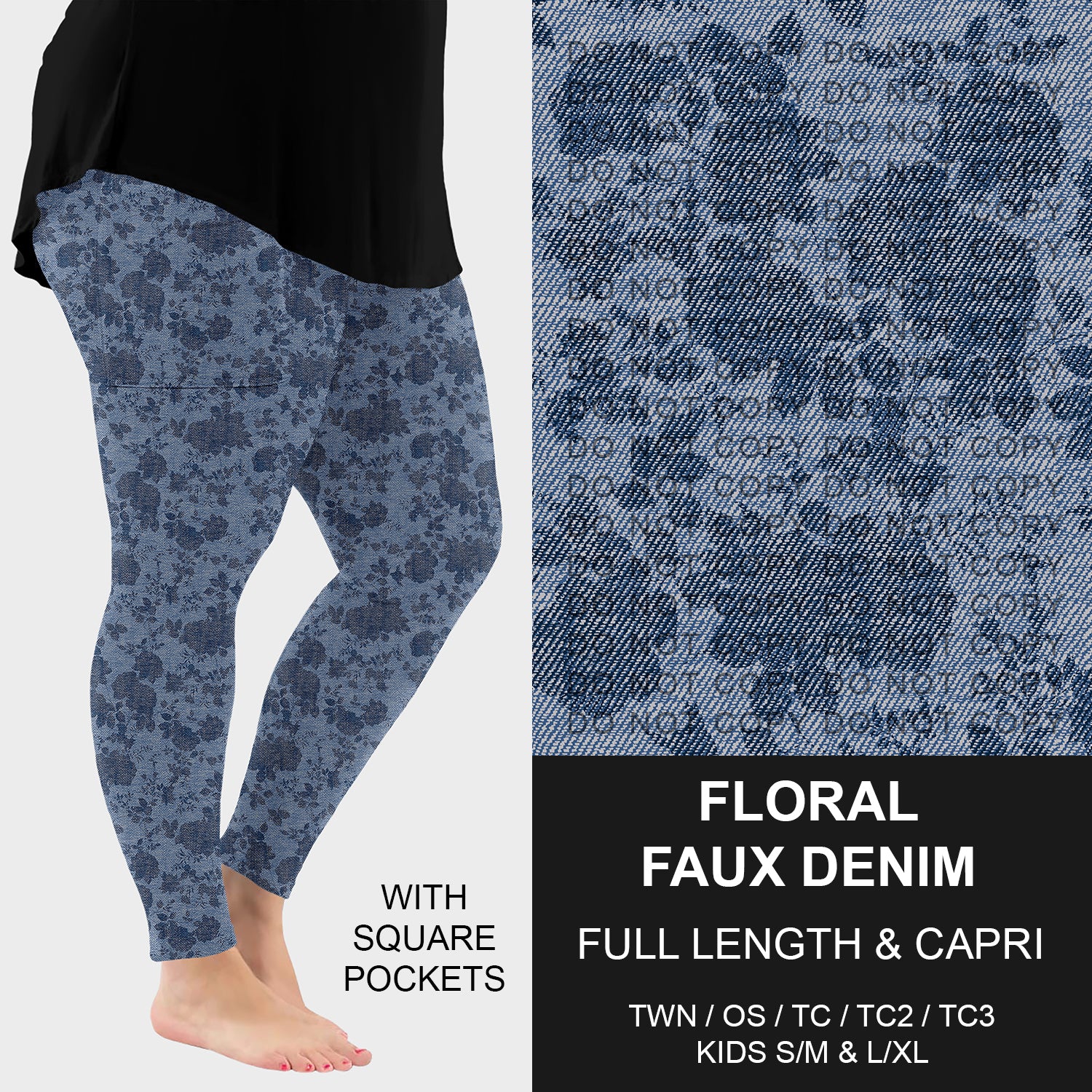 Pre-Order Floral Faux Denim Leggings w/ Pockets (ETA: late Dec.)