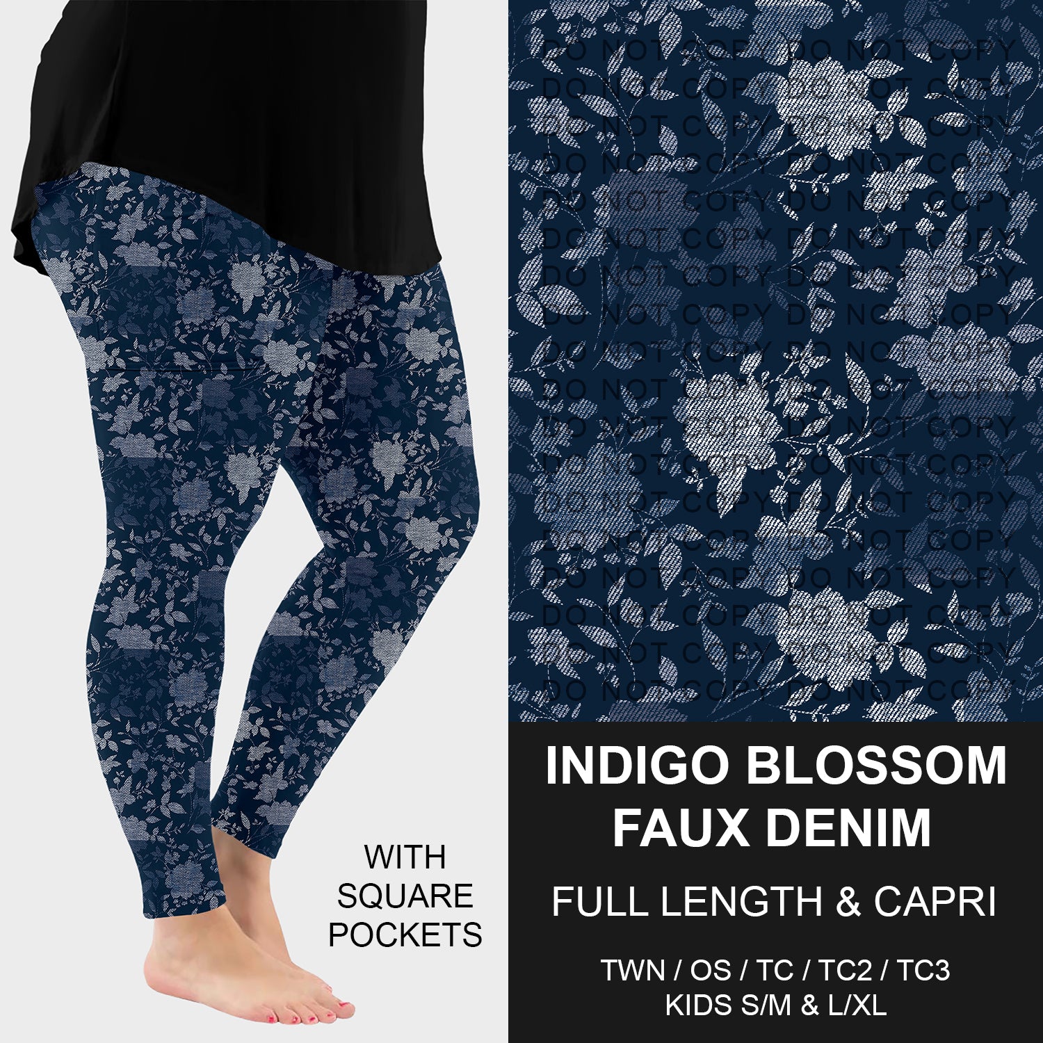 Pre-Order Indigo Blossom Faux Denim Leggings w/ Pockets (ETA: late Dec.)