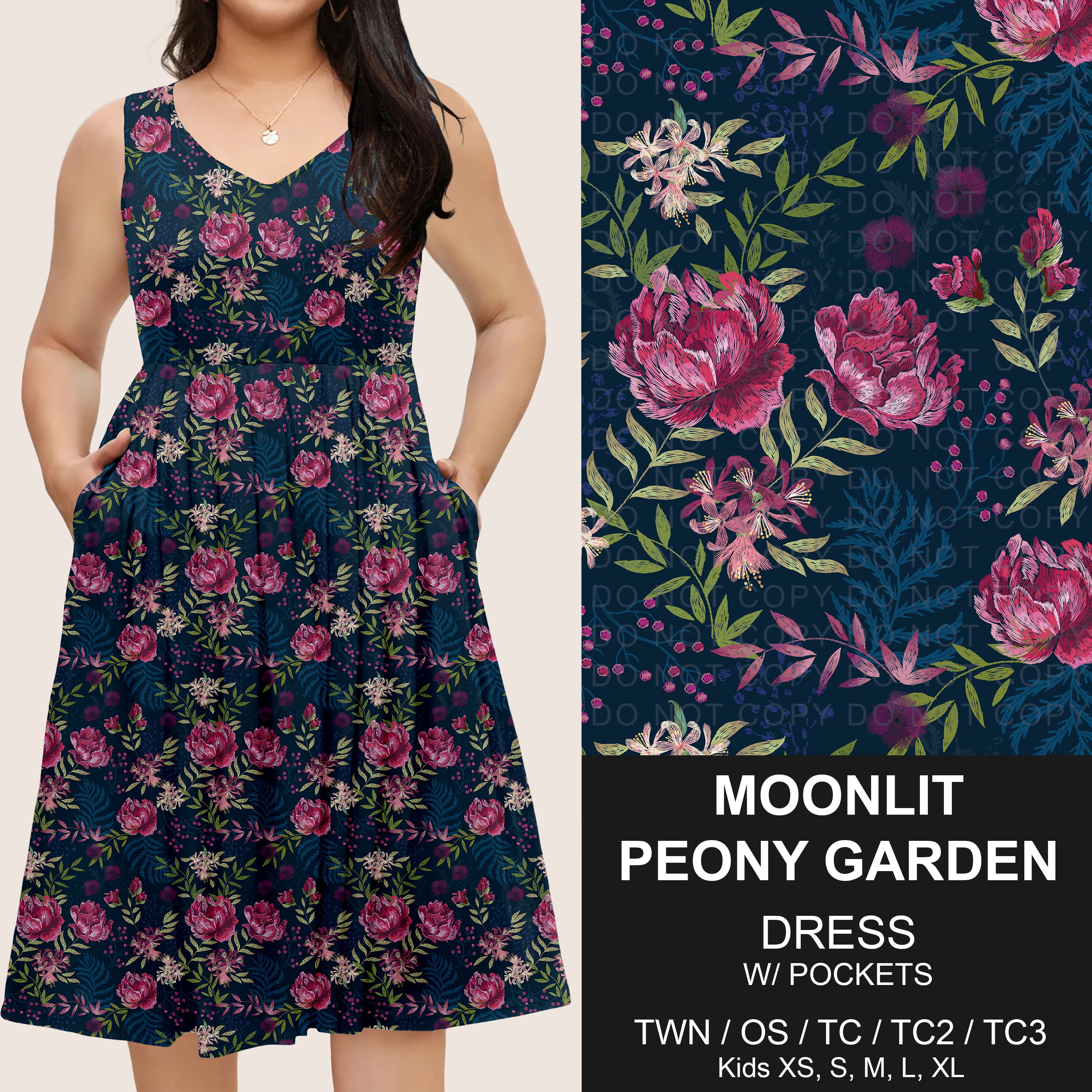 Pre-Order Moonlit Peony Garden Sleeveless Pocket Dress (ETA: early May)