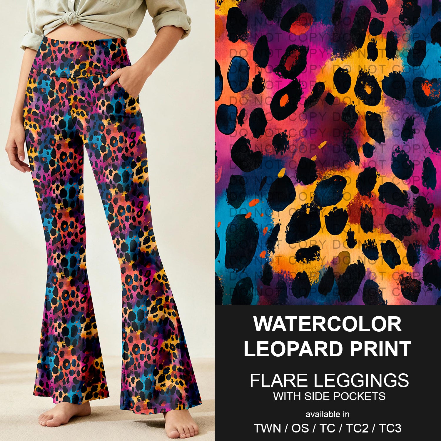 Pre-Order Watercolor Leopard Print Flare Leggings (ETA mid Jan.)