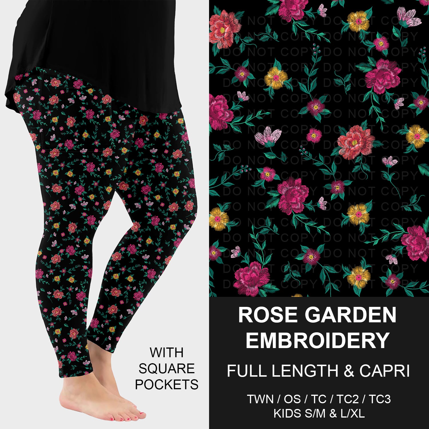 Pre-Order Rose Garden Embroidery Leggings with Pockets (ETA: mid July)