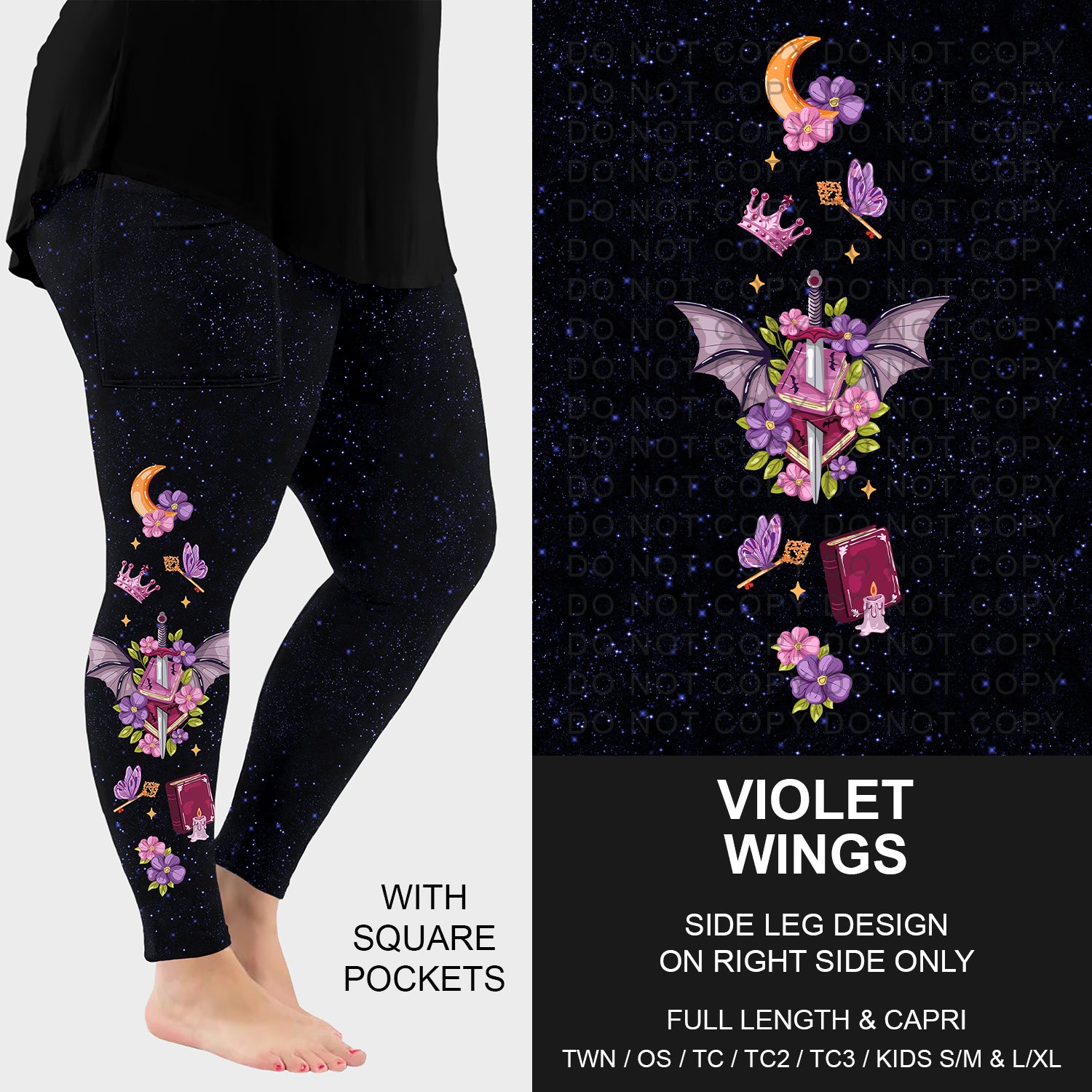 Pre-Order Violet Wings Side Design Leggings w/ Pockets (ETA: late June)